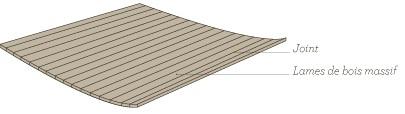 Panneau Deck : Panneau composé de lames de bois massives jointées "pont de bateau". Destiné à l’habillage des sols et murs de salles de bains, douches, piscines, dressing et chambres.