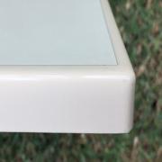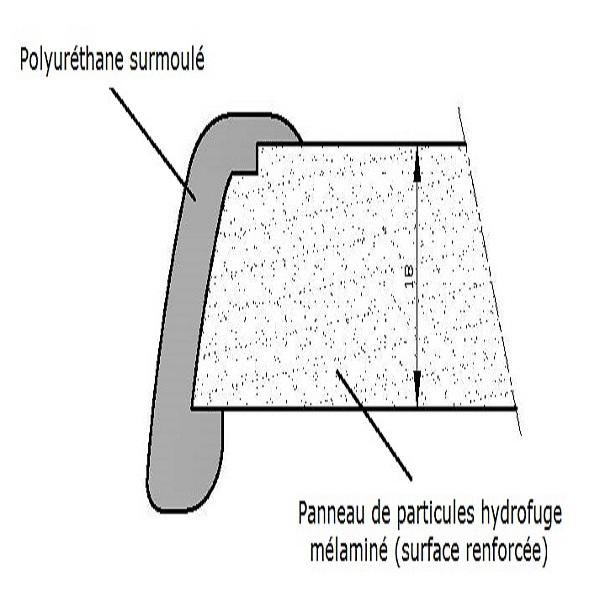 Dessus de tables pour CHR (Collectivités, Hôtellerie et Restauration): Le concept consiste à surmouler un chant polyuréthane sur un panneau de particules hydrofuge mélaminé dont la surface a été traitée pour résister à l'usure et à l'humidité. Cet ensemble monobloc et homogène est extrêmement résistant aux chocs, à l'usure et aux intempéries. Ces plateaux sont testés et déclarés conformes aux normes tunisiennes NT 27.55 (Equivalent à NF EN 14322) et NT 27.56 (Equivalent à NF EN 14323).