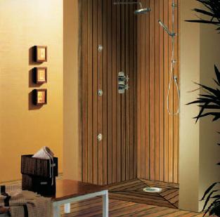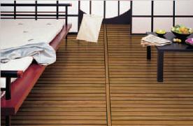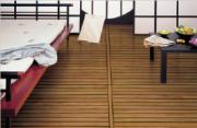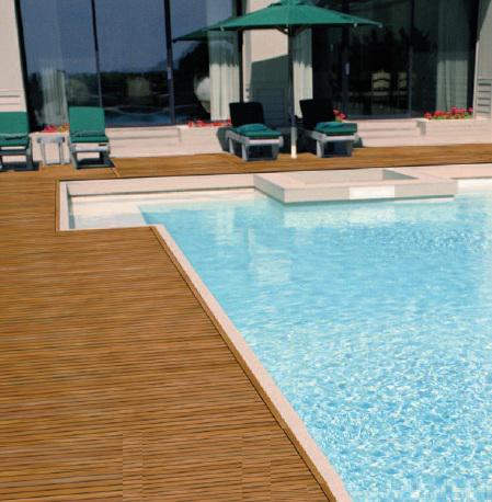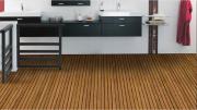 Panneau Deck : Panneau composé de lames de bois massives jointées "pont de bateau". Destiné à l’habillage des sols et murs de salles de bains, douches, piscines, dressing et chambres.