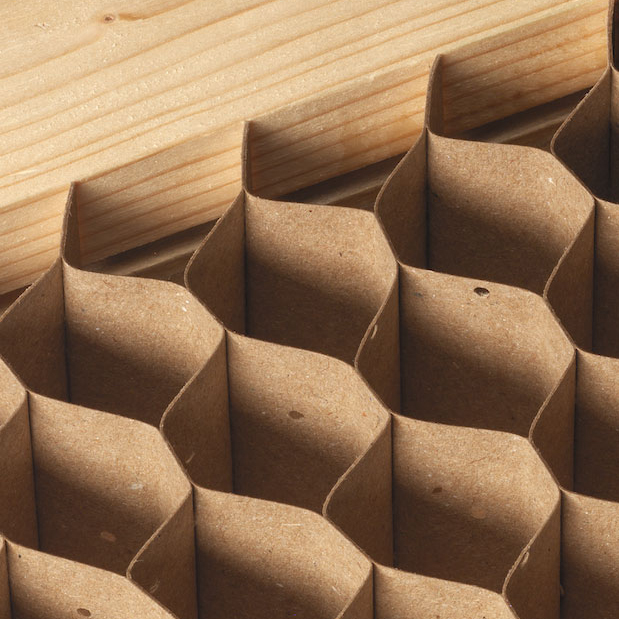 L'intérieur est rempli d'un réseau alvéolaire "Nid d'abeilles" qui donne à l'ensemble rigidité et légèreté.