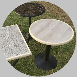 Lancement d'un nouveau dessus de tables surmoulé destiné aux terrasses de cafés et de restaurants. D'un concept nouveau, il a les qualités requises pour résister durablement aux manipulations fréquentes et aux intempéries.