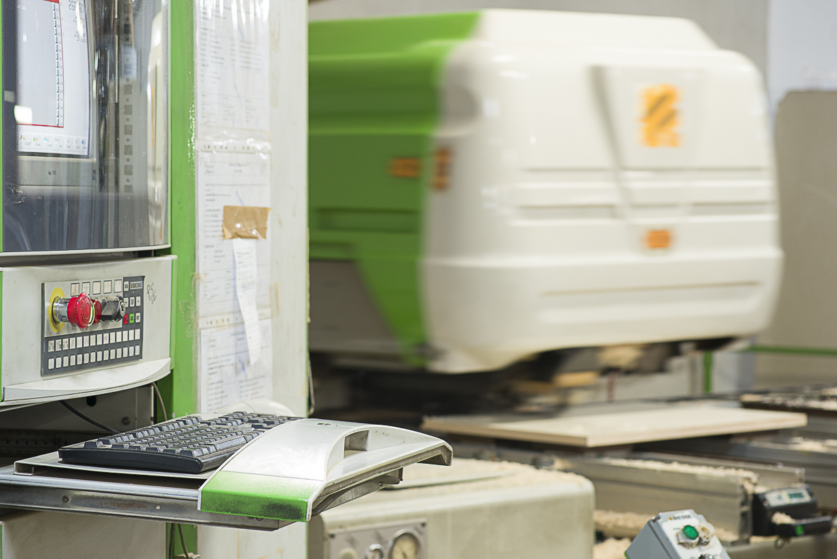 Cette conception permet d’optimiser la découpe des panneaux nécessaires et envoie les programmes d'exécution aux machines à commande numérique pour l'usinage des différentes composantes du meuble.