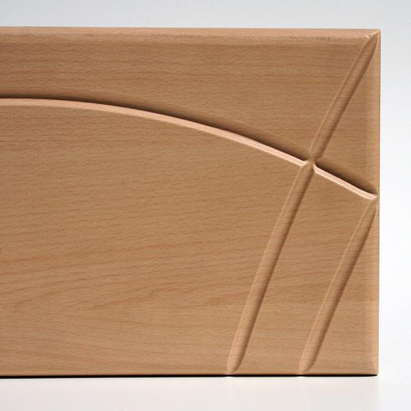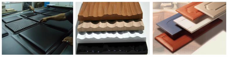 Panneau MDF usiné en 3D avec revêtement PVC ou placage essences fines. Le collage est obtenu à chaud par une presse spéciale comportant une membrane et fonctionnant en dépression. La combinaison de la grande diversité des reliefs, finitions, gamme de décors et de formats permet une personnalisation des réalisations.