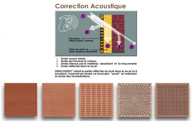Le panneau STRACOUSTIQUE est un panneau décoratif perforé qui permet d'améliorer le comportement acoustique d'un local. Utilisé avec des matériaux absorbants, il modifie favorablement la qualité d'écoute de ce local. Il réduit la partie réflchie du bruit et rend l'espace plus "sourd" en réduisant la durée des réverbrations.